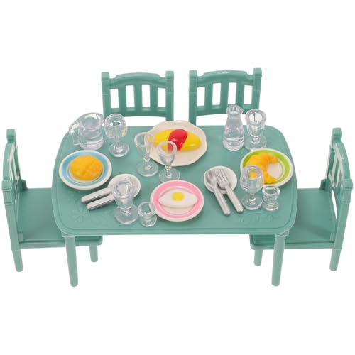 Beaupretty Miniature Doll House Furniture Set, Plastic Miniature Dining Table and Chairs, Dollhouse Tiny Kitchen Furniture for DIY Dollhouse Accessories and Play Scenes