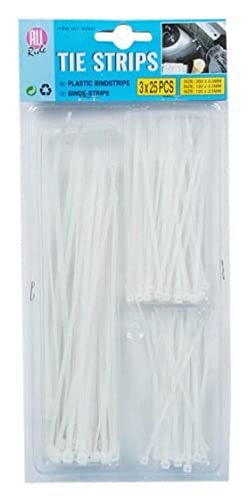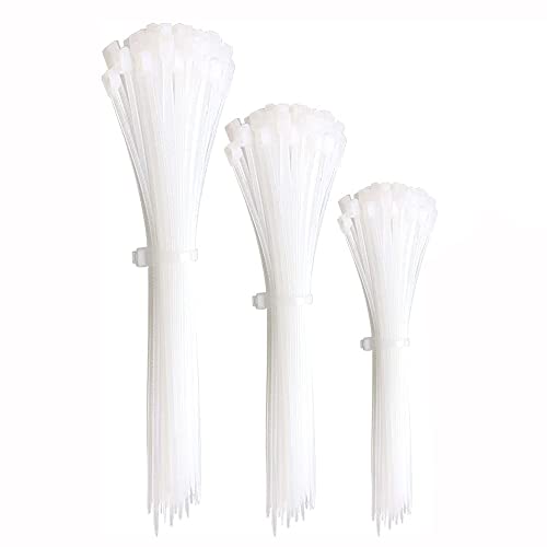 100pc White Plastic Cable Ties, 3 Different Sized Tie Wraps, Durable Strong Plastic Material Ensuring Longevity, Self Locking Zip Ties Ideal for Home, Office, Garden and DIY (White)