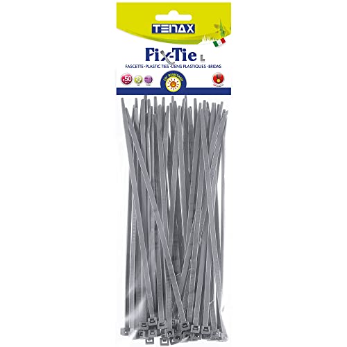 tenax Fix-Tie L Multi Purpose Plastic Cable Ties, Silver Grey, Length 20 cm, Pack of 50