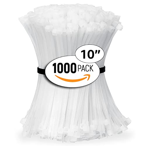 ALBO Zip Ties White 10 Inch 1000 Pack 50 lb, Long Plastic Cable Ties Thick 0.19 Inch Tie Wraps Heavy Duty UV Resistant Nylon Wire Ties for Indoor and Outdoor