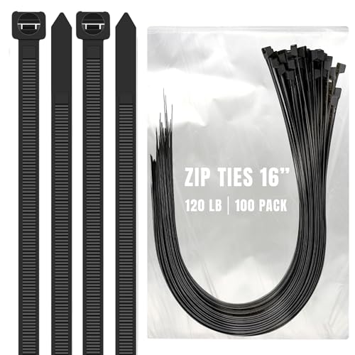 ALBO Black Zip Ties 16 Inch Long Zip Ties Plastic Cable Ties Thick 0.3 Inch 100 Pack Tie Wraps Heavy Duty 120lb UV Resistant Nylon Wire Ties for Indoor and Outdoor