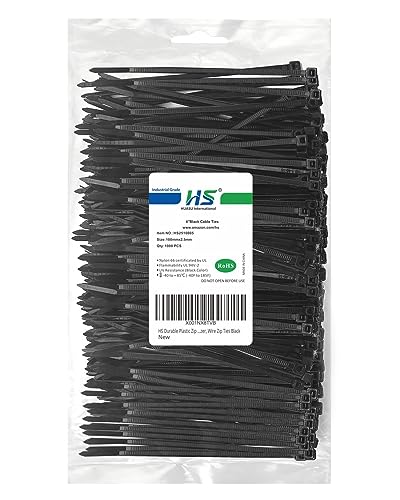 HS Durable Plastic Zip Ties 4 Inch (Bulk-1000 Pack) Small Zip Ties Thin 18 Lbs Self-Locking Nylon Ties for Electronics Organizer, Wire Zip Ties Black