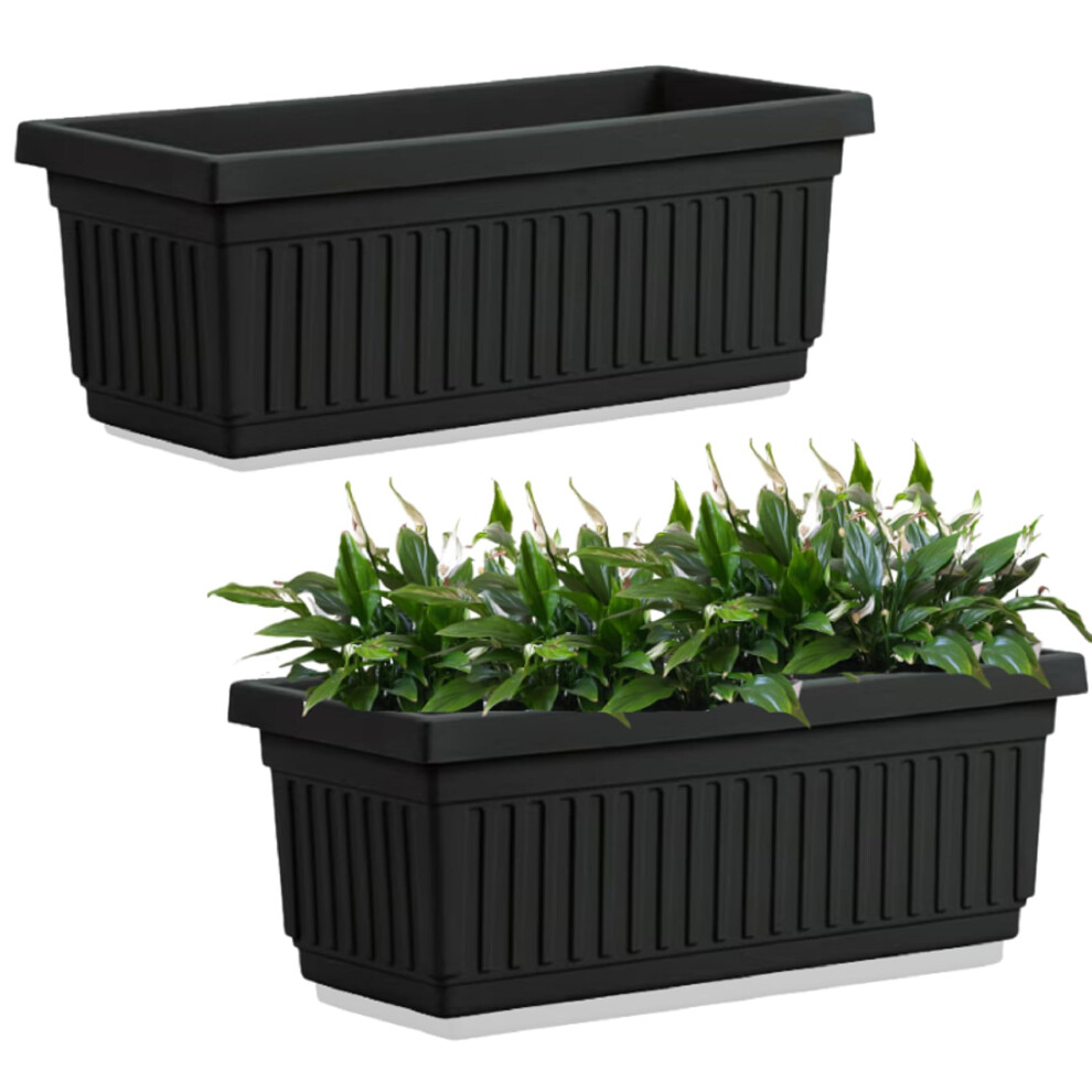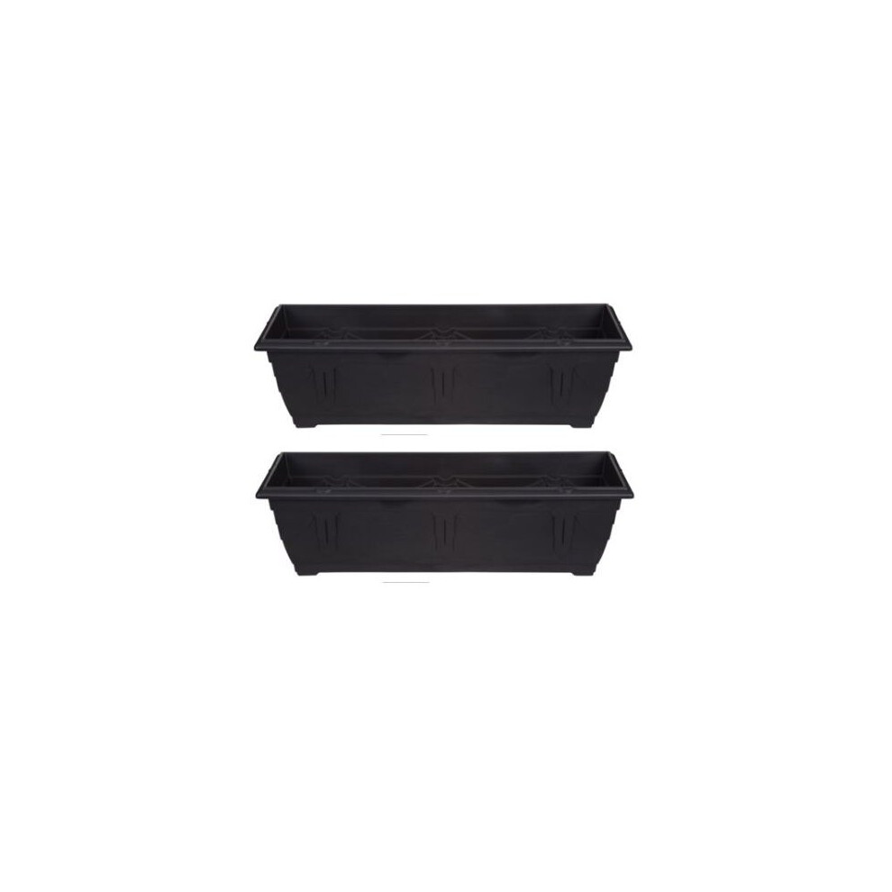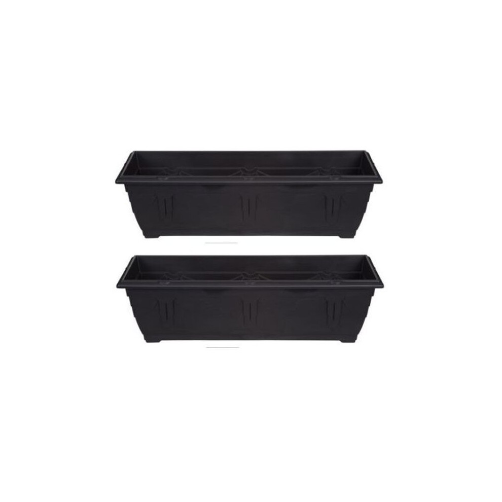 2 Black Venetian Patio Trough Planter Large Plastic Garden Pot 60cm