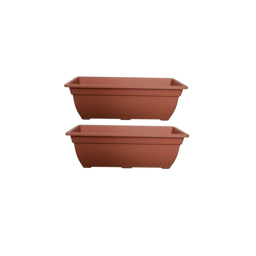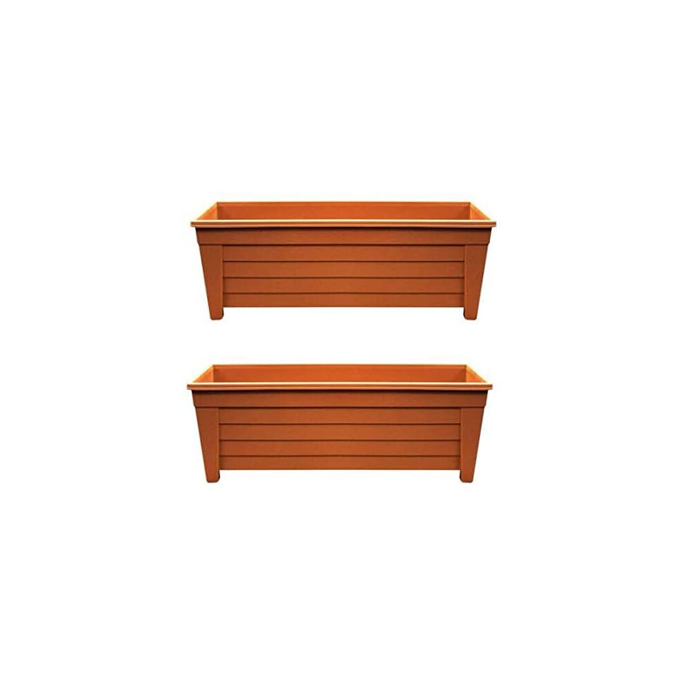 (Terracotta, 2) Long Trough 55cm Plant Pot Plastic Planter Indoor Outdoor Garden Window Herb Box Ebony & Terracotta Uk