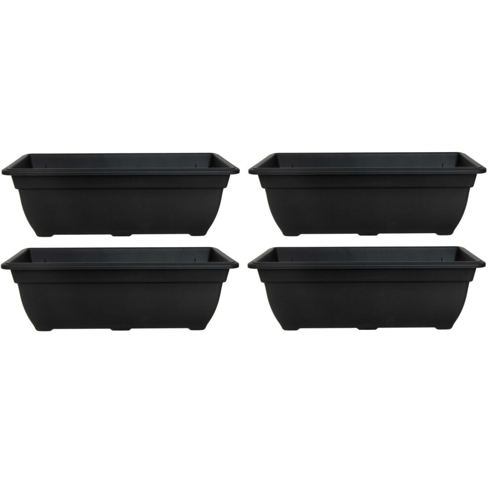 Set Of 4 Large 72cm Black Garden Plastic Trough Balcony Planter Window Plant Box