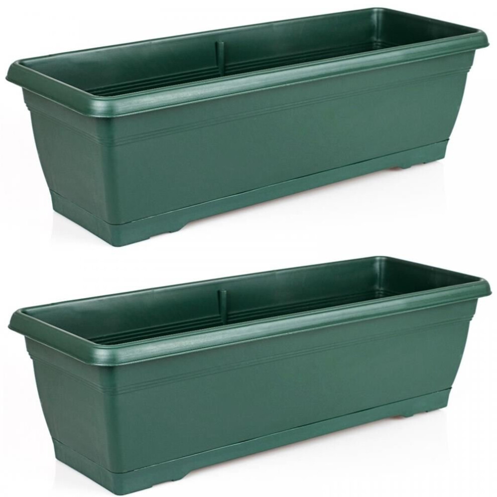 2 Green Venetian Patio Trough Pot Large Plastic Garden Planter 60cm