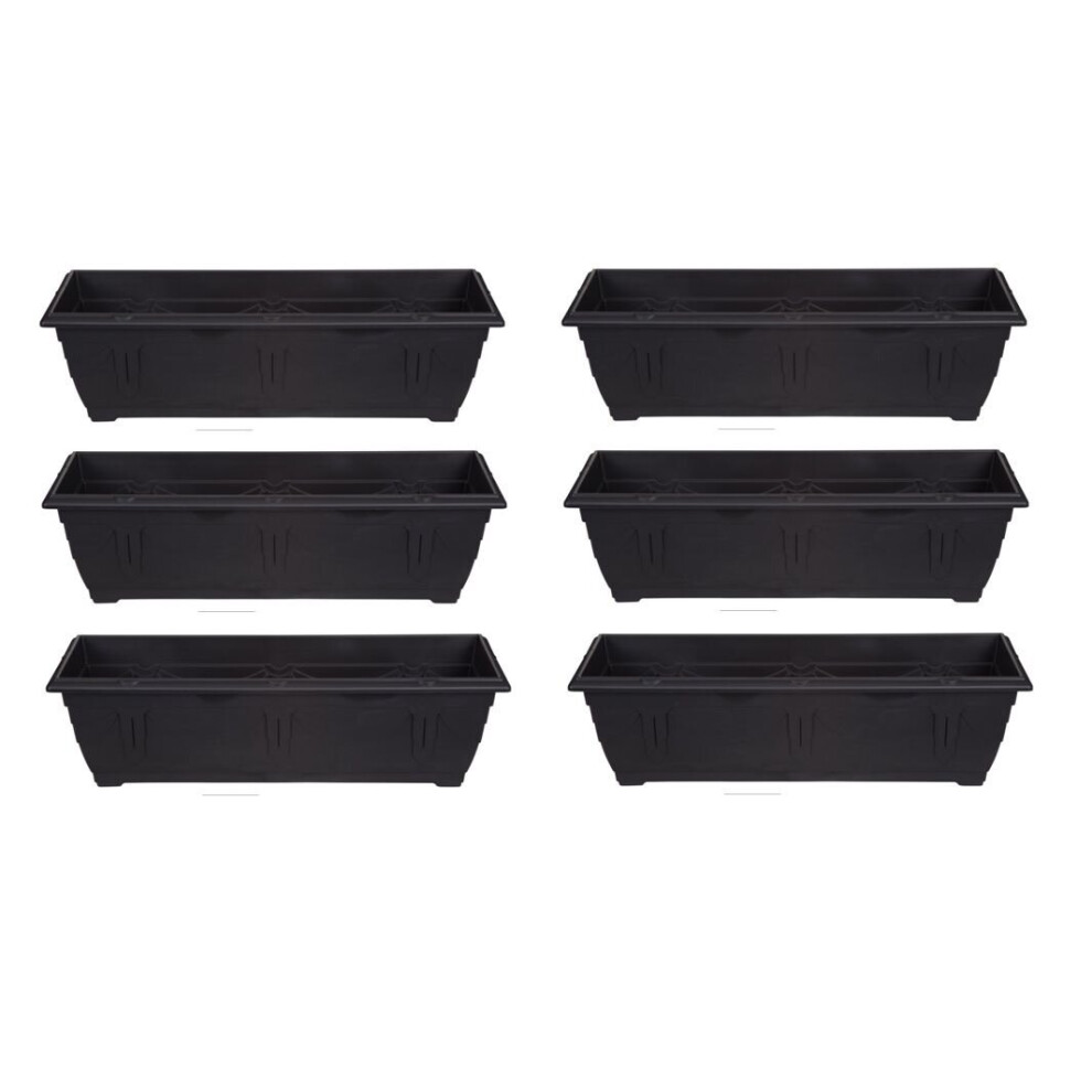 6 Black Venetian Patio Trough Planter Large Plastic Garden Pot 60cm