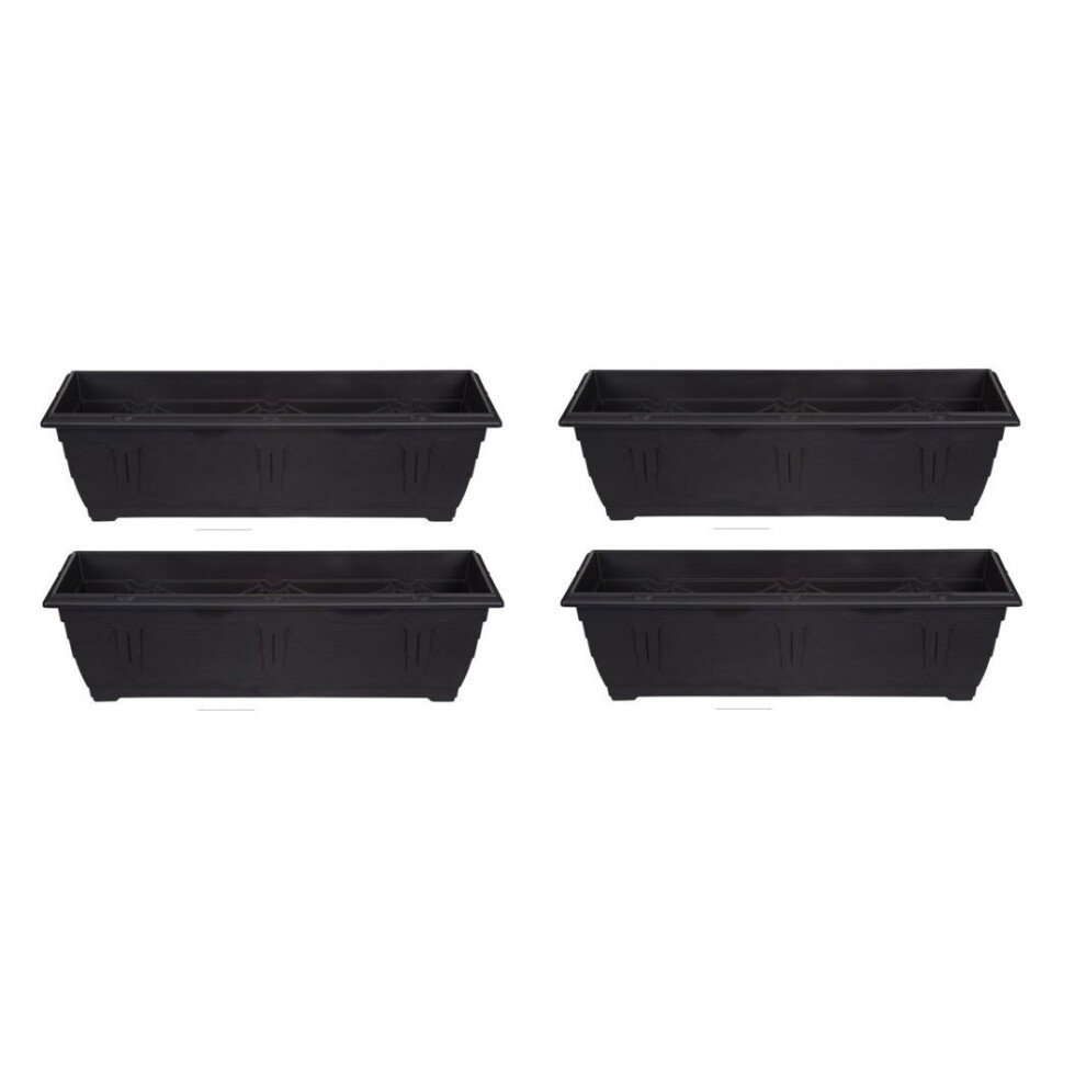 4 Black Venetian Patio Trough Planter Large Plastic Garden Pot 60cm