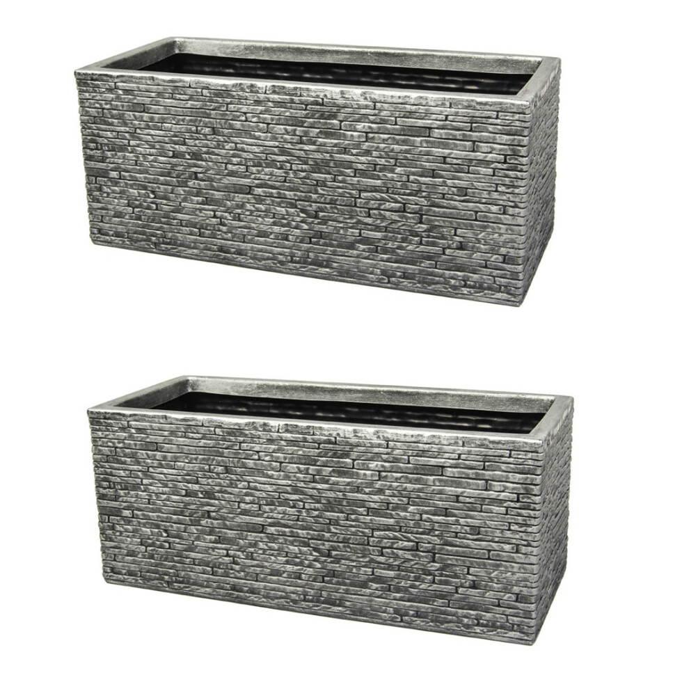 2 x Grey Brick Stone Effect Plastic Garden Trough Planter Patio Flower Pot 60cm