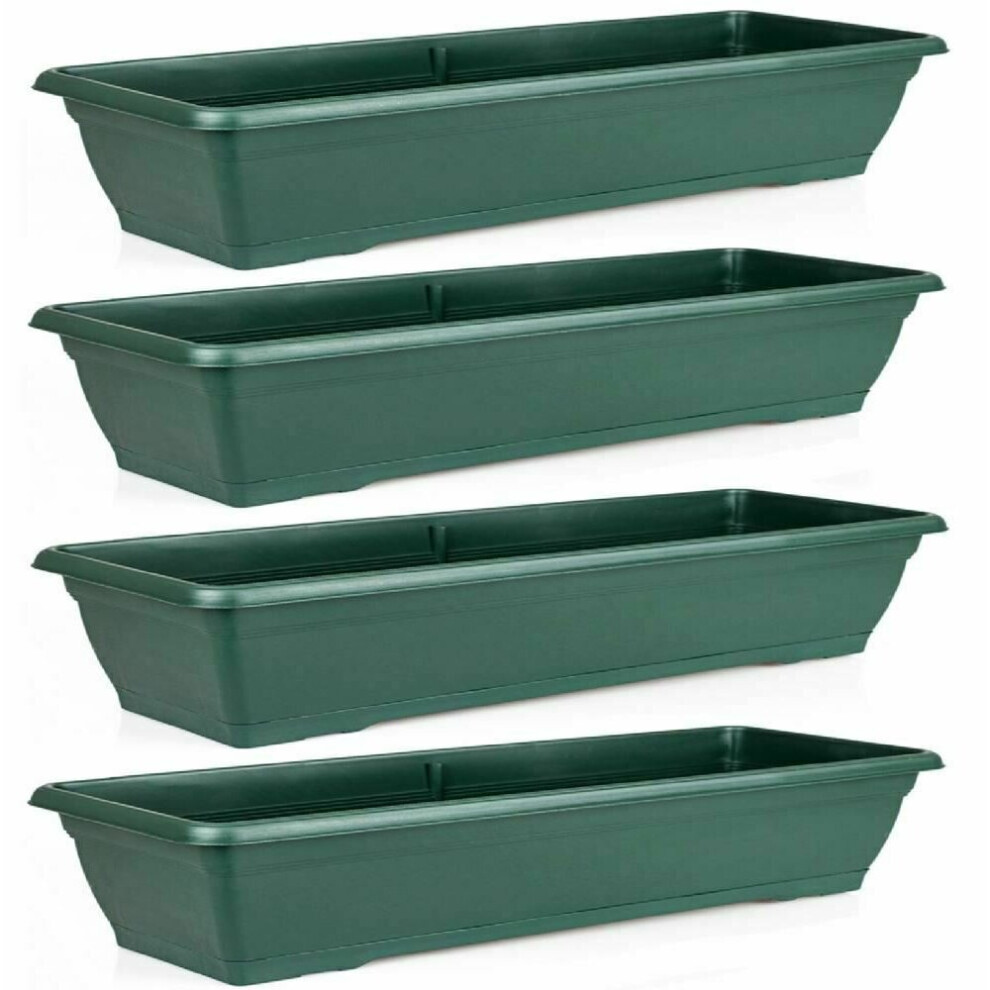 4 x Large Green Garden Plastic Trough Balcony Planter Window Plant Box