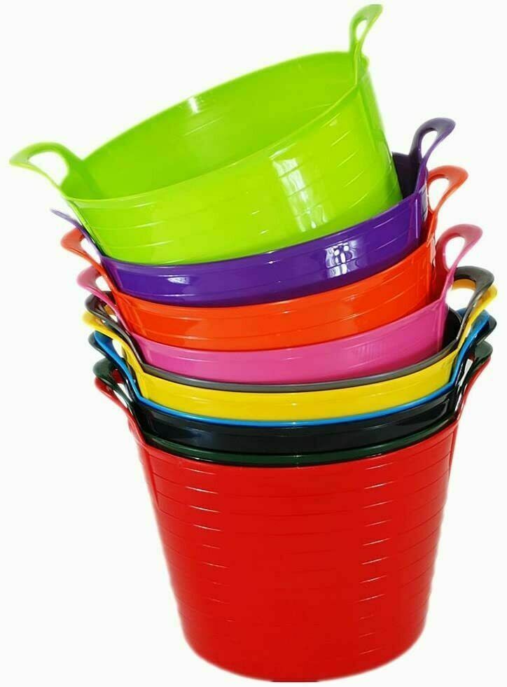 5 x 40L Flexi Tub Plastic Buckets Animal Feed/Waste Storage Trug Tub Assorted UK