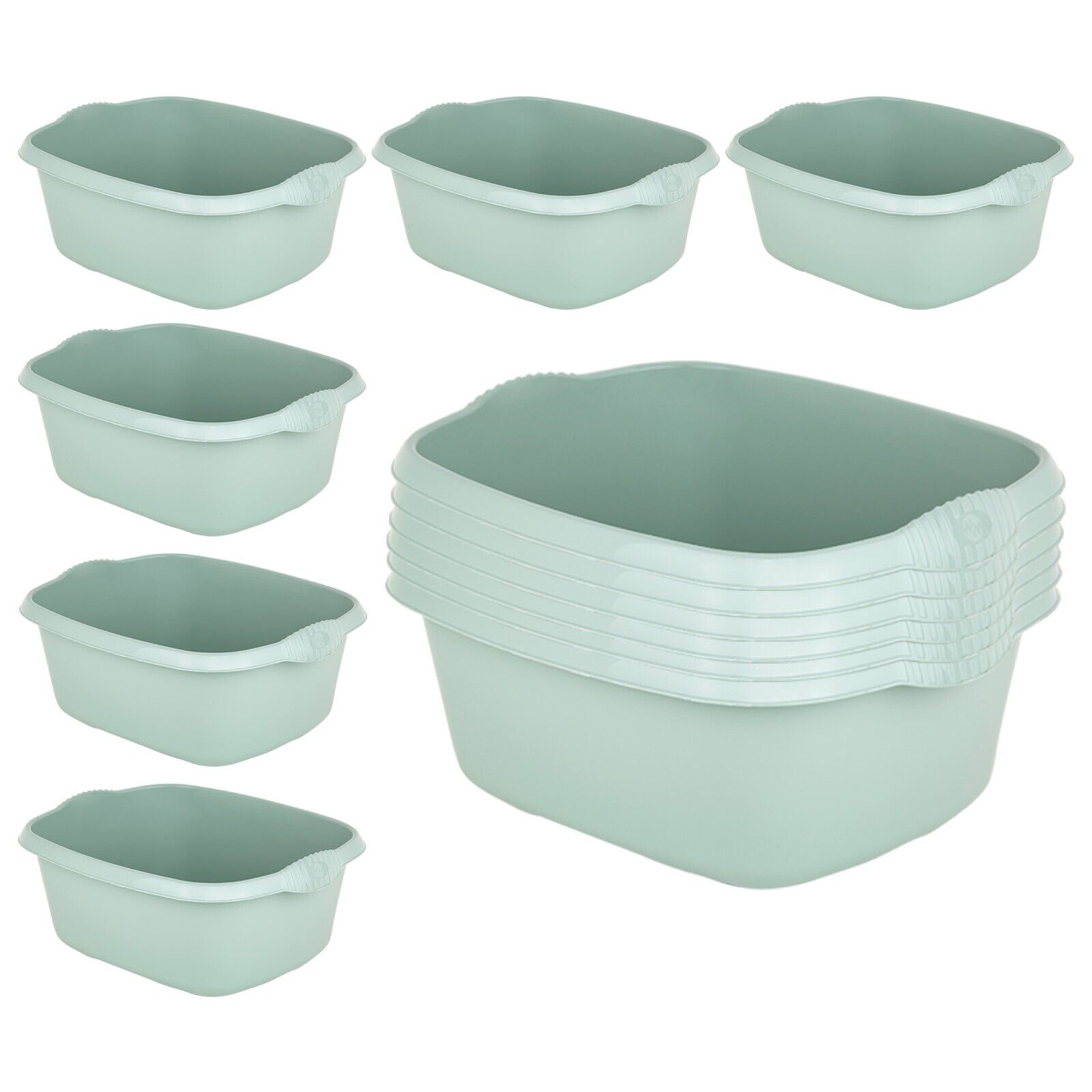 12x Washing Up Bowl Kitchen Large Rectangular Plastic Cutlery Tub Sink 39cm Sage