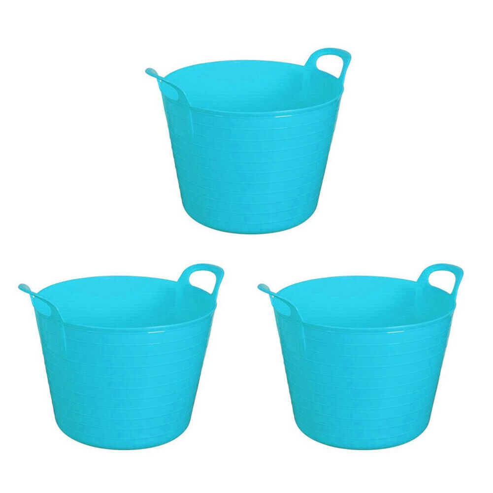 3 x 26L LITRE FLEXI TUB PLASTIC BUCKET STORAGE CONTAINER FEEDING TRUG BLUE
