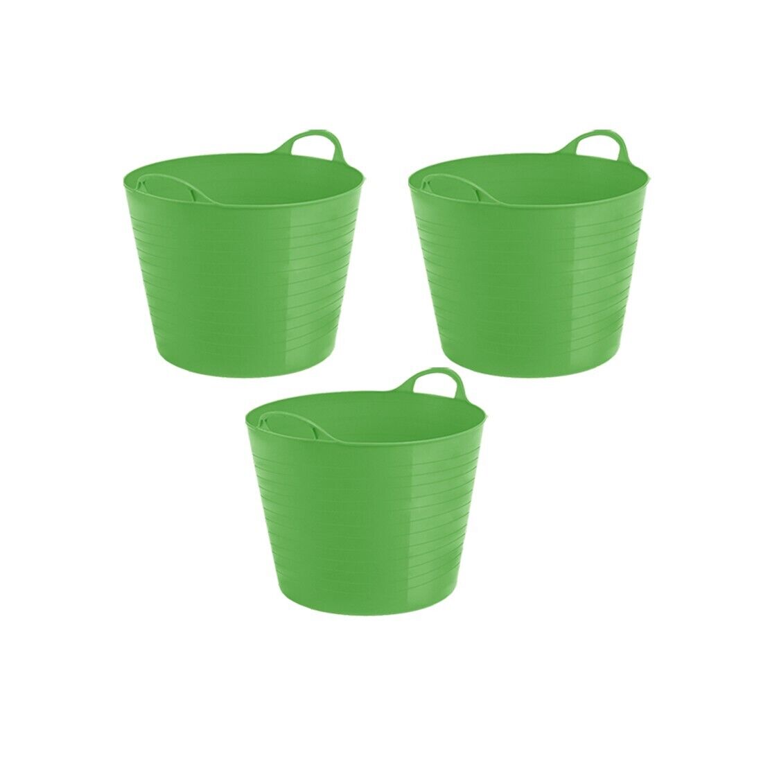 3 x 26L Flexi Tub Plastic Multi-Purpose Feed Storage Toy Buckets UK- Lime Green