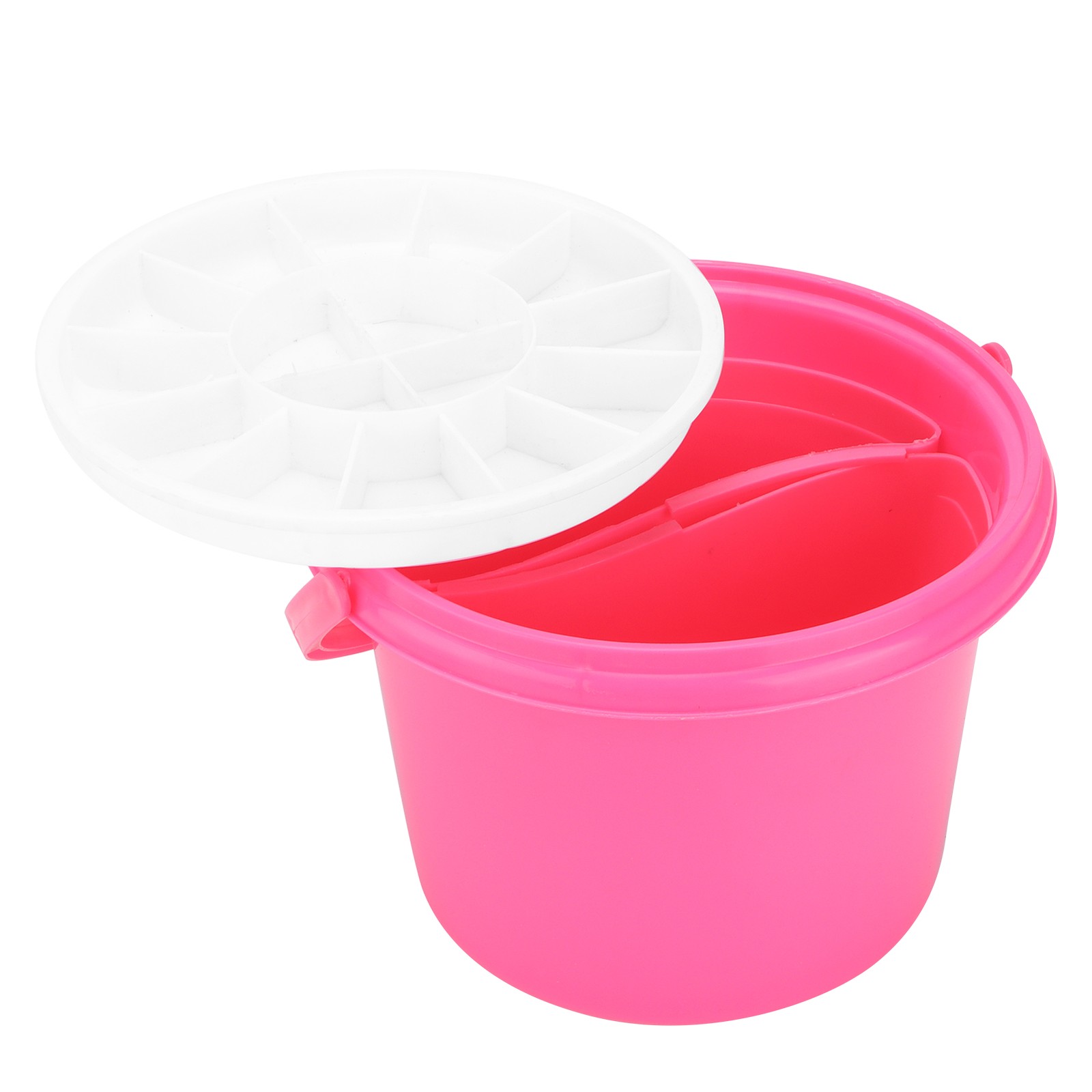 (YJ004 Pink)Paint Brush Tub Plastic 2 Compartments Bucket With Palettes For LW