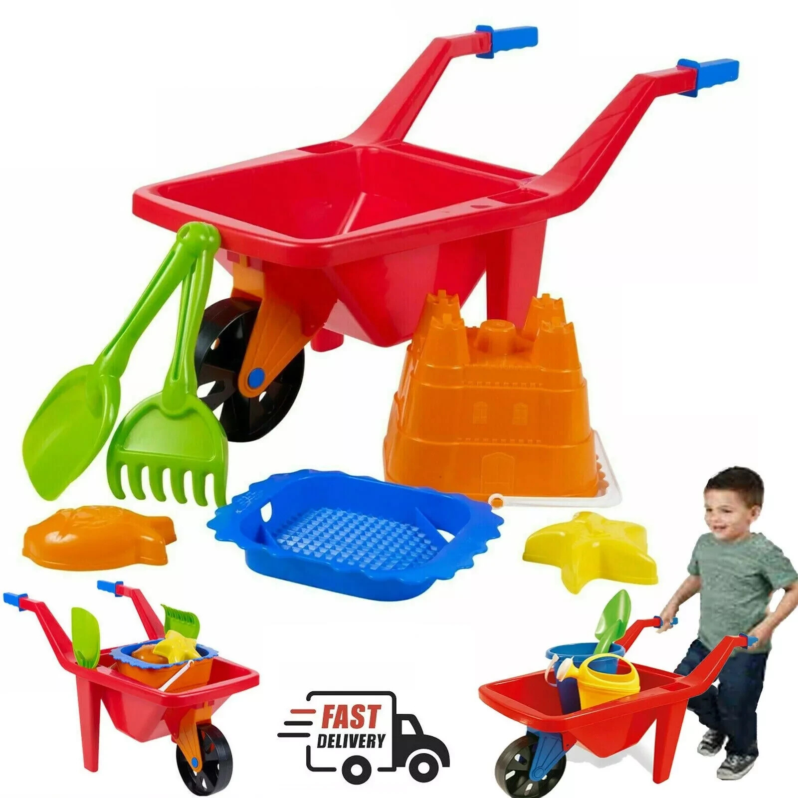 Kids Plastic Wheelbarrow Beach Bucket Play Toy Set Sandbox Summer Outdoor Garden
