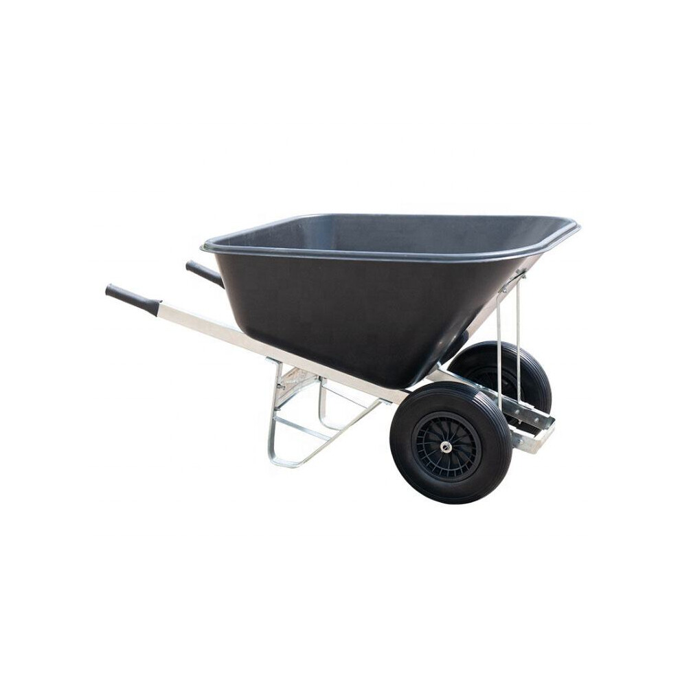 (Black) Agri Barrow 200 Litre Twin Wheel Wheelbarrow Plastic Tub Puncture Proof Tyres