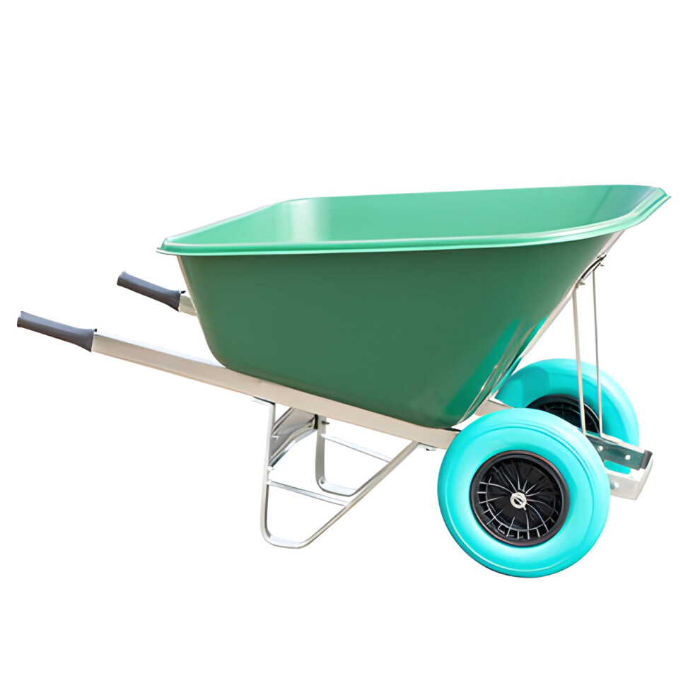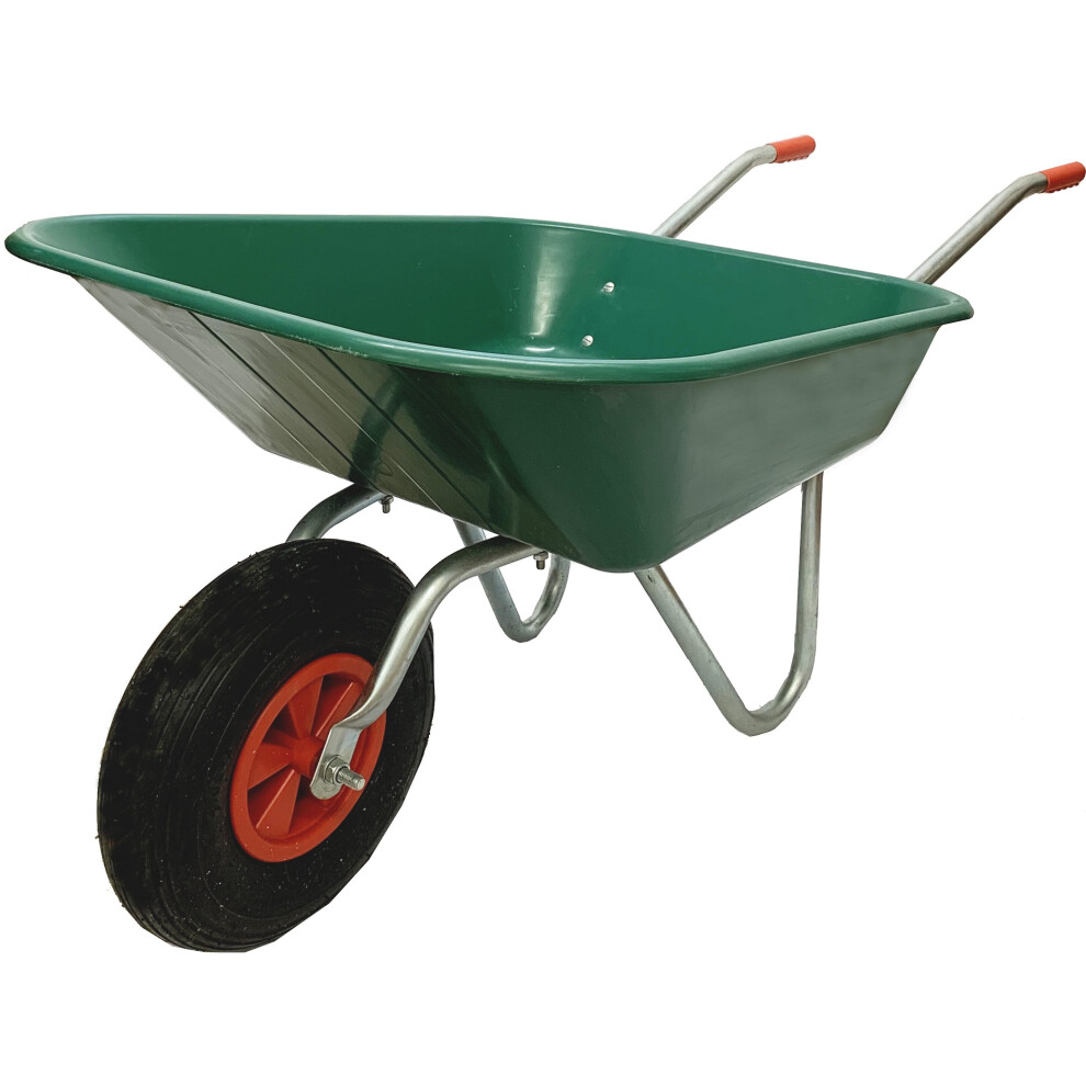 Two Wheel Plastic Green Wheelbarrow - 75 Ltr / 120kg - With Pneumatic Wheel