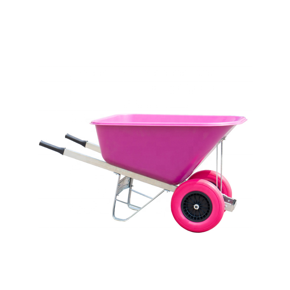 (Pink) Agri Barrow 200 Litre Twin Wheel Wheelbarrow Plastic Tub Puncture Proof Tyres