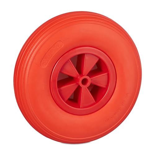 Relaxdays Wheelbarrow Tyre, Rubber, Spare Wheels, Puncture-Proof, 3.50-6", Max. Load 100 kg, 17 mm Axis, Plastic, Red, 33 x 9 cm