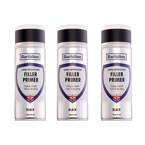 Bartoline Filler Primer Black Spray Paint 400ml – Fills Scratches, Dents & Chips – Multi-Surface Adhesion to Metal, Wood, Plastic, Fast-Drying Automotive Primer for Smooth Topcoat Finish