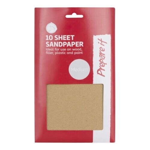 10 Medium Grit Sandpaper Sheets for Wood, Plastic, Paint & Filler