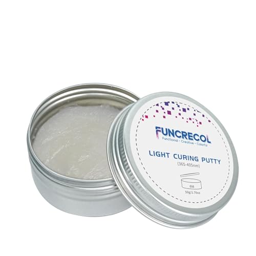 FUNCRECOL Multipurpose UV Light Curing Putty for Filler, UV Putty Model Filler, Heat Resistant Repair Putty, 3D Print Putty for Ceramic Repair Putty, Model Glue, Wood Filler Putty, Plastic Filler, 50g