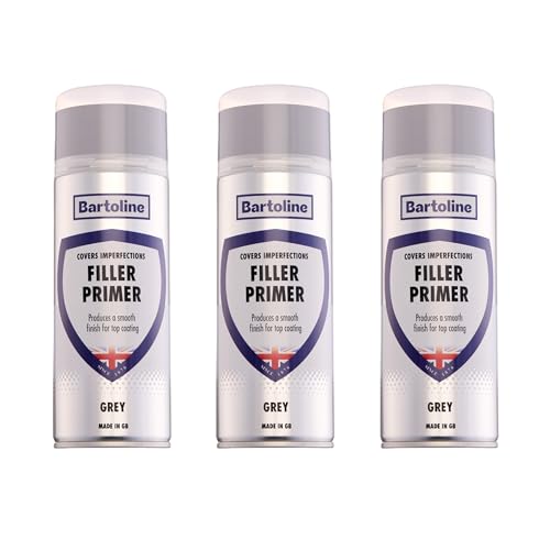 Bartoline Filler Primer Grey Spray Paint 400ml – 3 Pack High Build Filler Primer for Metal, Plastic and Wood Smooth Finish, Quick-Drying - DIY and Automotive Use