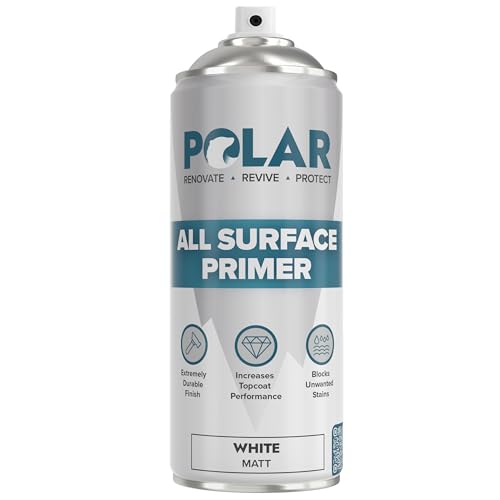 Polar Matt White Primer Spray Paint - 400ml | High-Build Filler Primer Paint for Wood, Metal, Plastic, Ceramics, Tiles & Painted Surfaces | Spray Primer for Long Lasting Protection & Quick Drying
