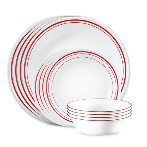 Corelle Modern Rounds 12 Piece Dinnerware Set, Service for 4, Triple Layer Chip & Crack Resistant Glass Plate and Bowl Sets