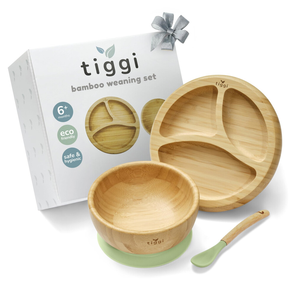 Bamboo Weaning Set by Tiggi, Complete with Baby Bowl and Suction Plate for Weaning, Baby Feeding Set, Kids Dinner Set, Toddler Plates and Bowls Sets