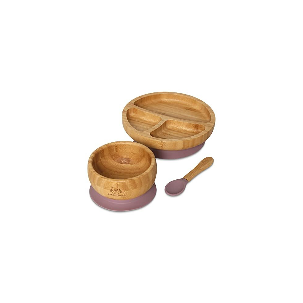 Bubba Bear Baby Weaning Set | Bamboo Plates, Bowls & Spoons for Toddler Led Feeding | Suction Plate, Bowl & Spoon Sets for Babies from 6 Months |