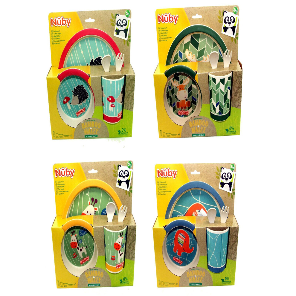 Nuby Childrens Lunch Set Plate/Bowl/Cup/Cutlery 4 Fun Designs Sets