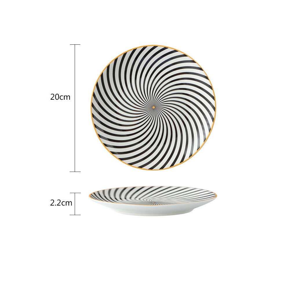 Plate and Bowl Sets Ceramic Ramen Bowl Large Noodle Bowl Striped Design Retro Tableware Black and Blue