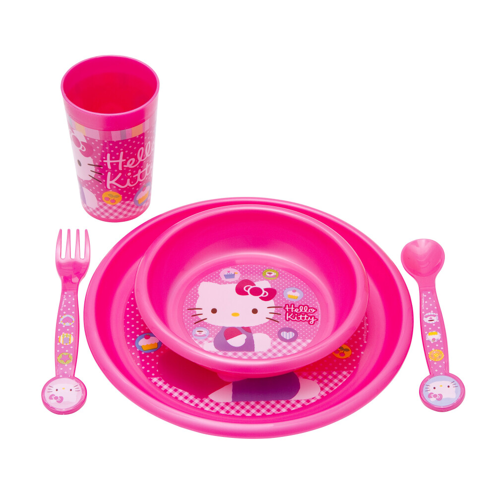 Kids 5 Piece Hello Kitty Dinner Supper Plate Bowl Cup Children's Sets