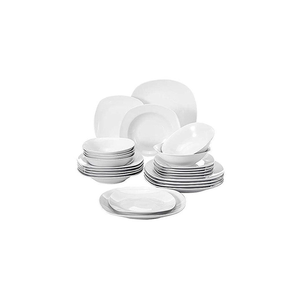 MALACASA 24-Piece Plates and Bowls Sets, Porcelain White Dinner Sets for 6 People Chip Resistant Crockery Set with Dinner Plate/Dessert Plate/Soup Bowl/Cereal Bowl, Series Luna
