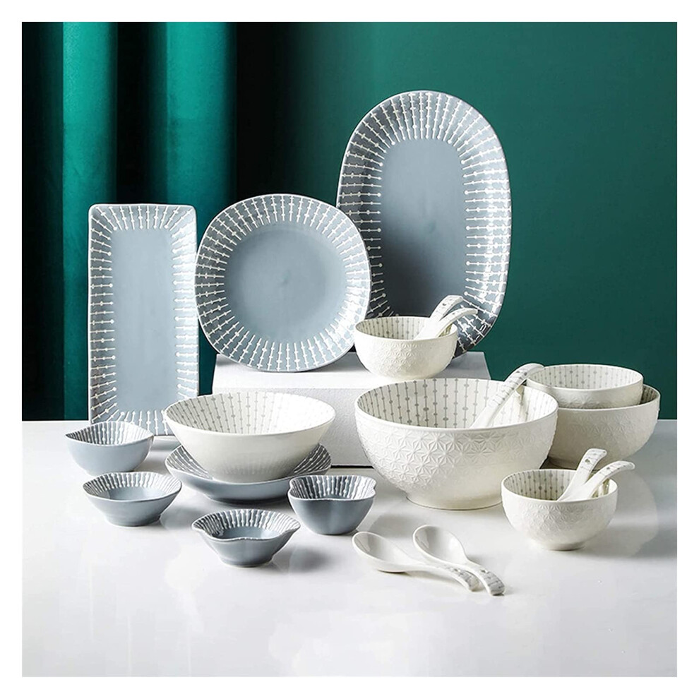 Dinner Set, Ceramics Dinner Sets, 42 Pieces Cereal Bowl and Steak Plate Relief Porcelain Dinnerware Set for Family Gathering Kitchenware