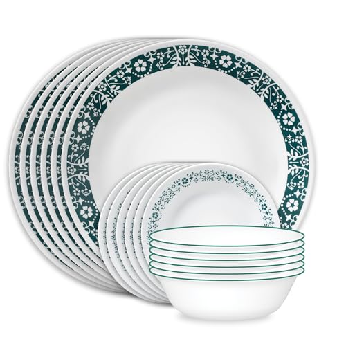 Corelle Vitrelle 18 Piece Glass Dinnerware Sets Service for 6, Triple Layer Chip & Crack Resistant Glass Plate and Bowl Sets, Penelope