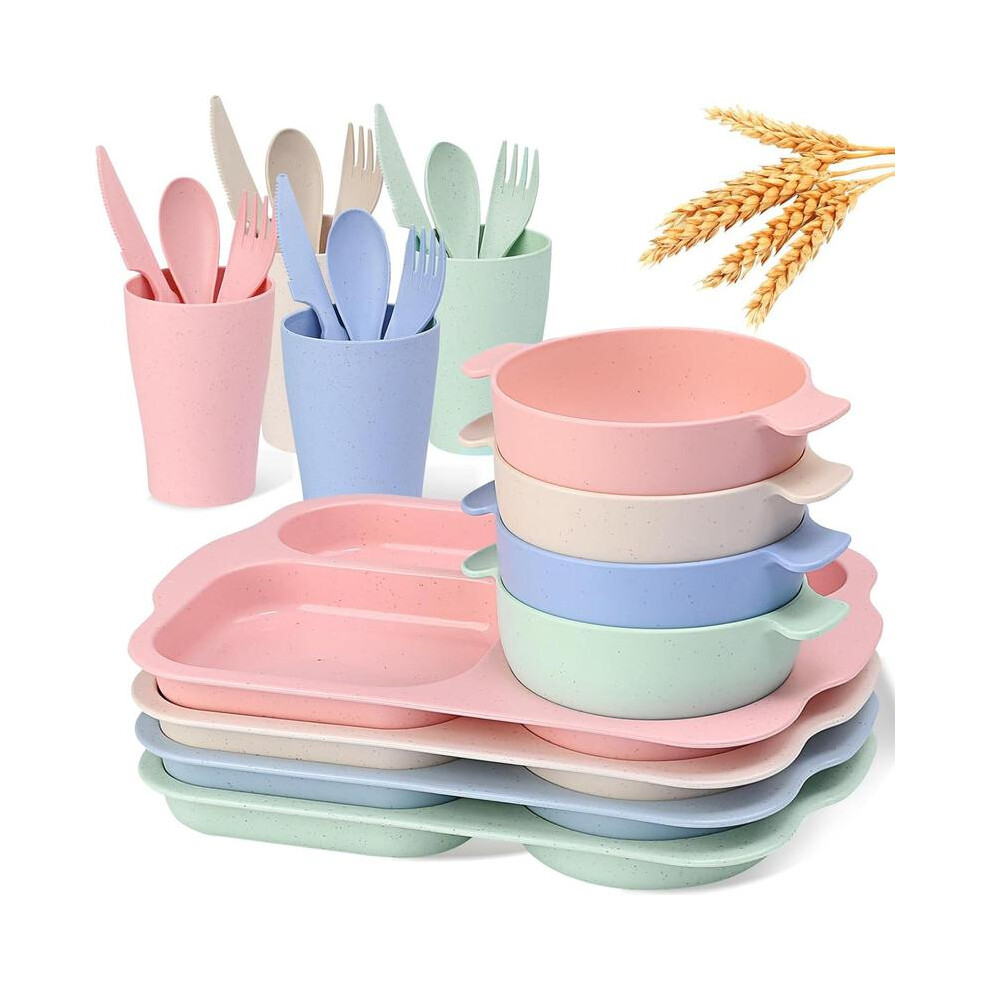 (Wheat Straw Dinnerware Sets, [Package List As Picture Shown]) Wheat Straw Cutlery Set, Dinnerware Service Set Including Plate*4 & Bowl*4 & Cup*4 & Cu