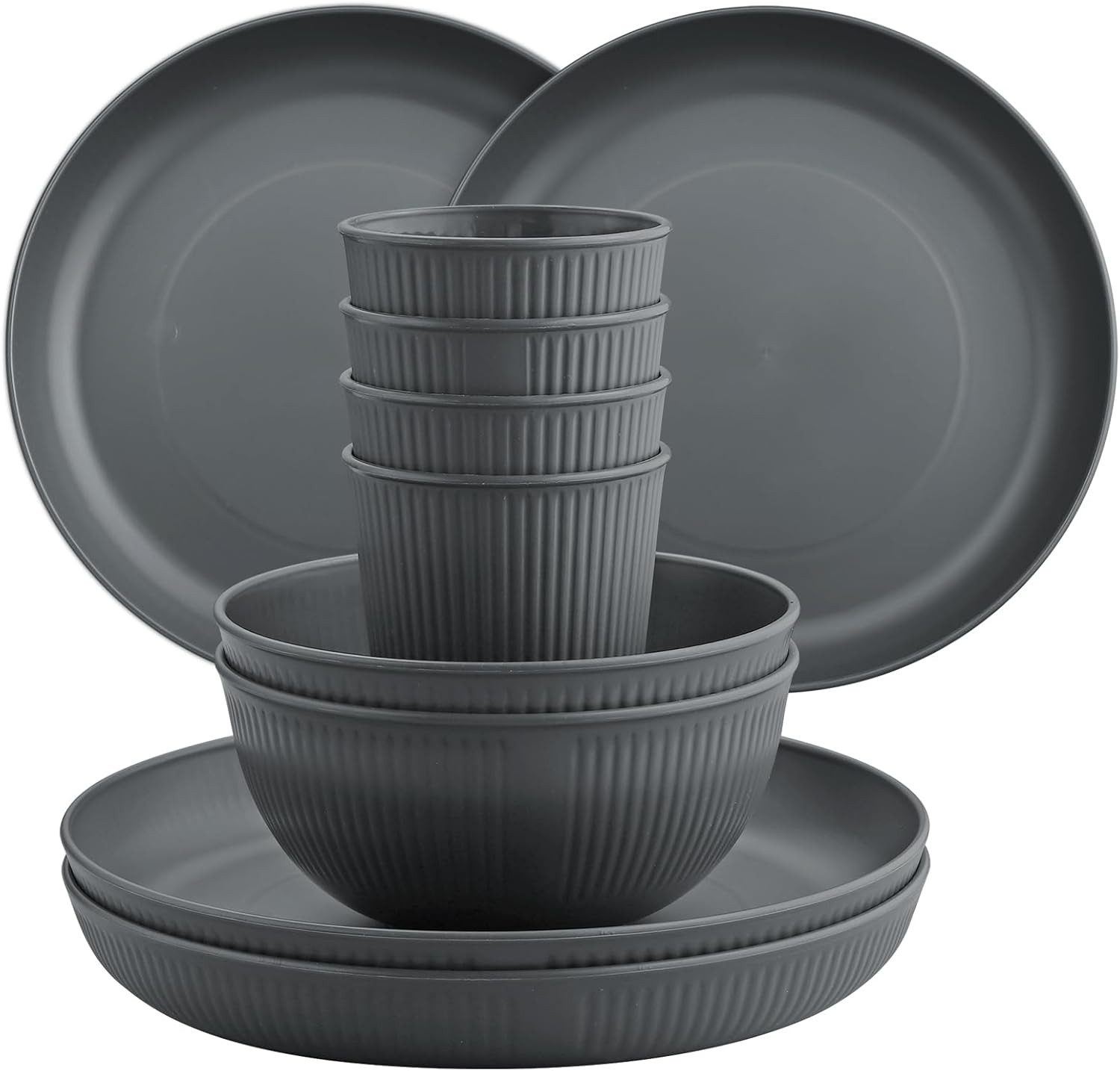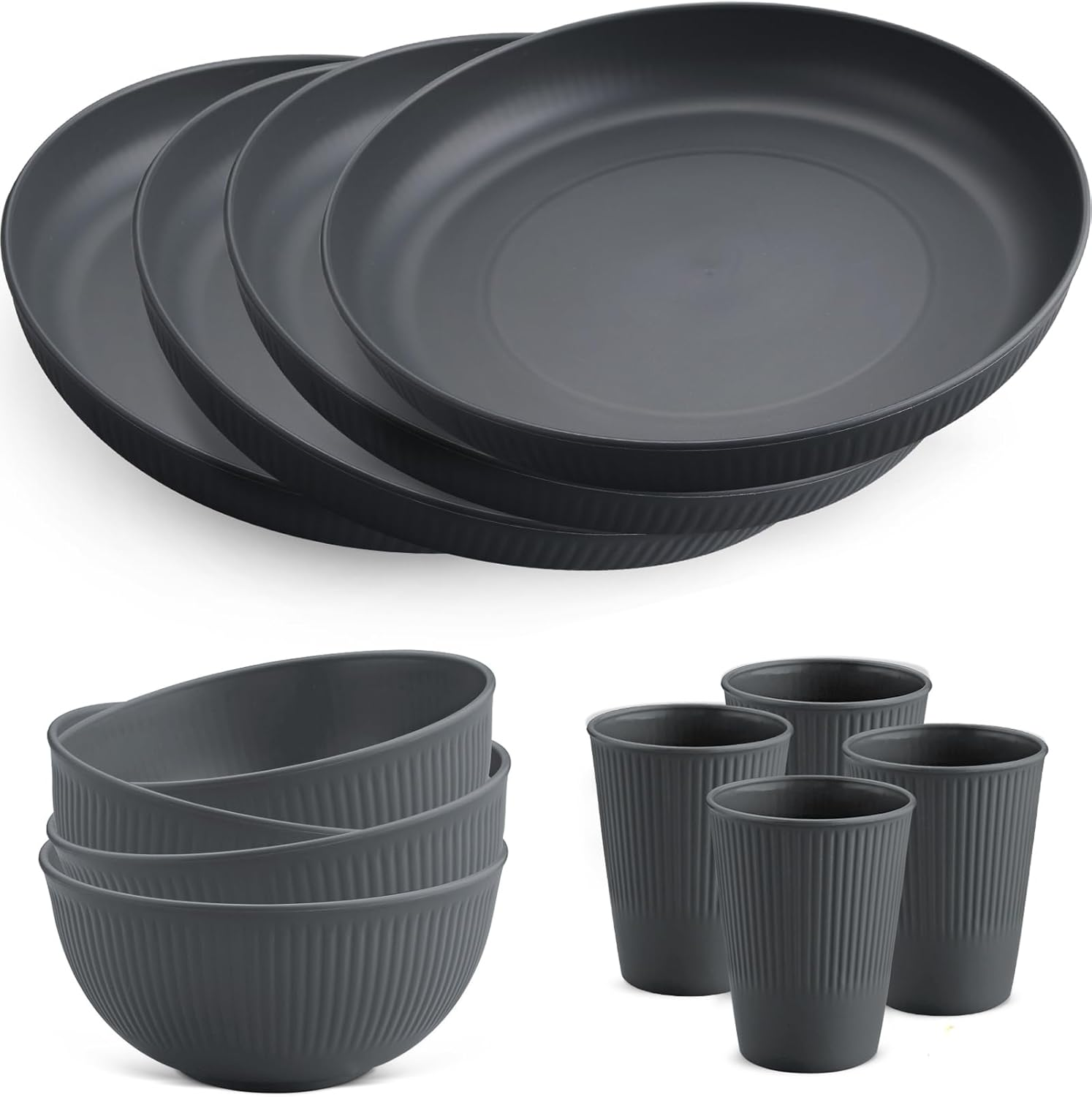 FUNYKICH 12PCS Plastic Plates and Bowls Set, Camping Plate and Bowl Set, Unbrea