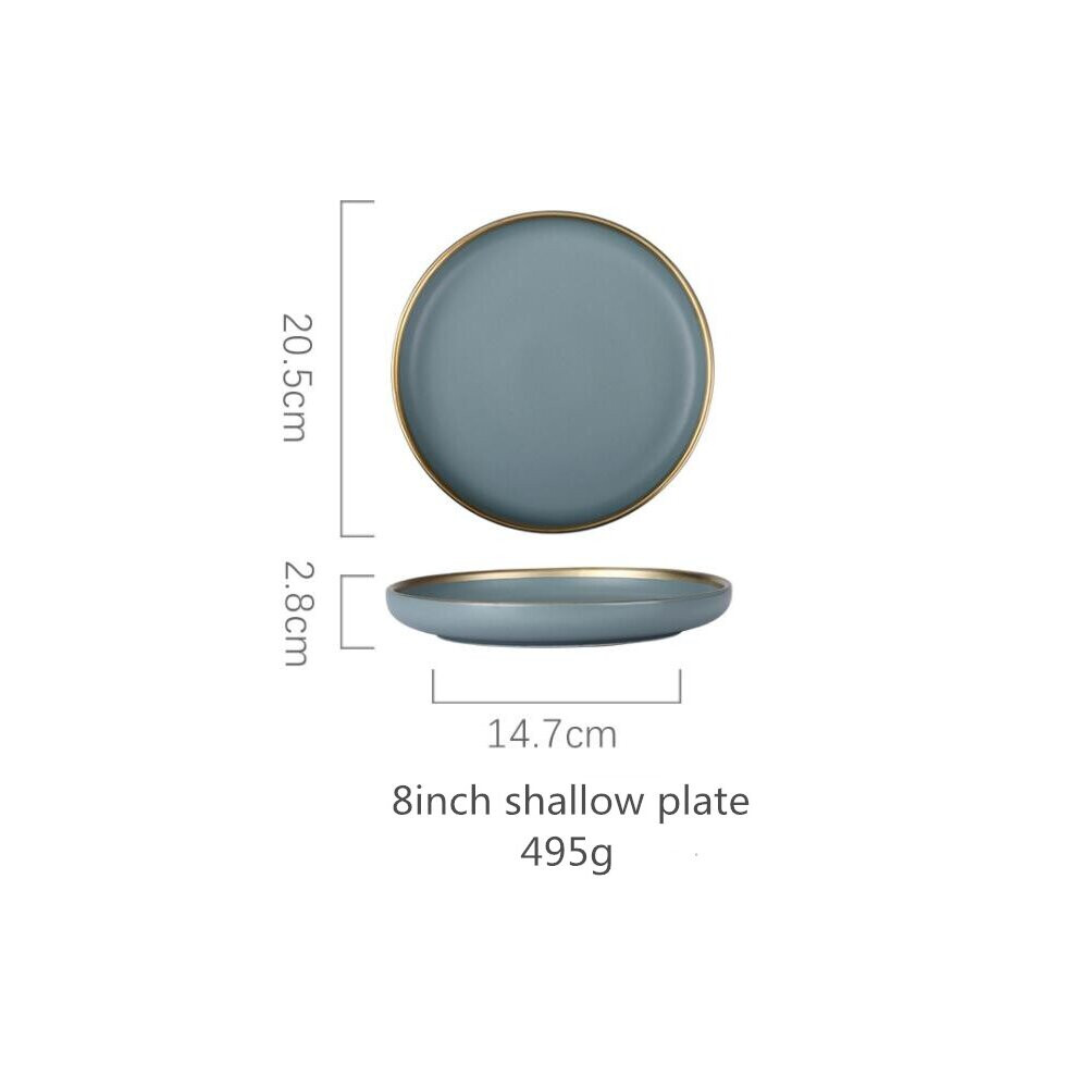 (a-8inch shallow plate) Matte Gilt Rim Ceramic Tableware Set with Spoon Cereals Bowl Dessert Plate Steak Plate for Dinner Gift Plates and Bowls Set