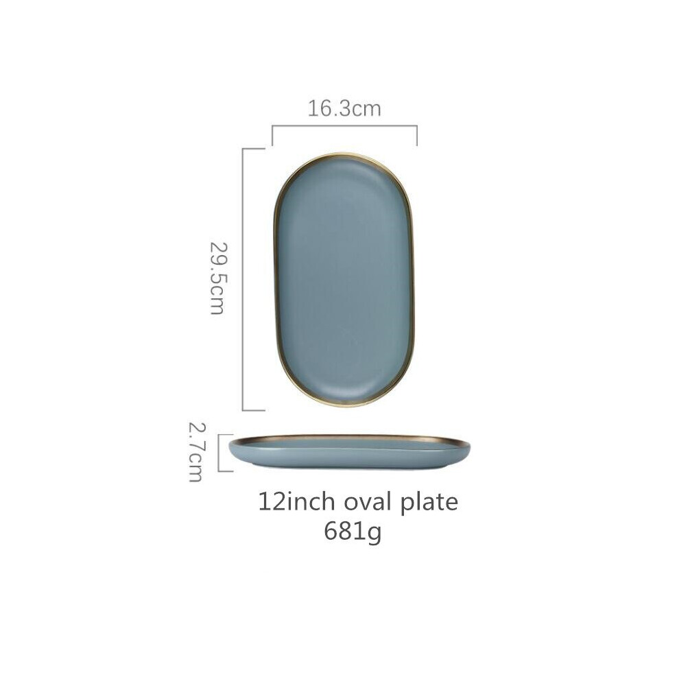(a-12inch oval plate) Matte Gilt Rim Ceramic Tableware Set with Spoon Cereals Bowl Dessert Plate Steak Plate for Dinner Gift Plates and Bowls Set