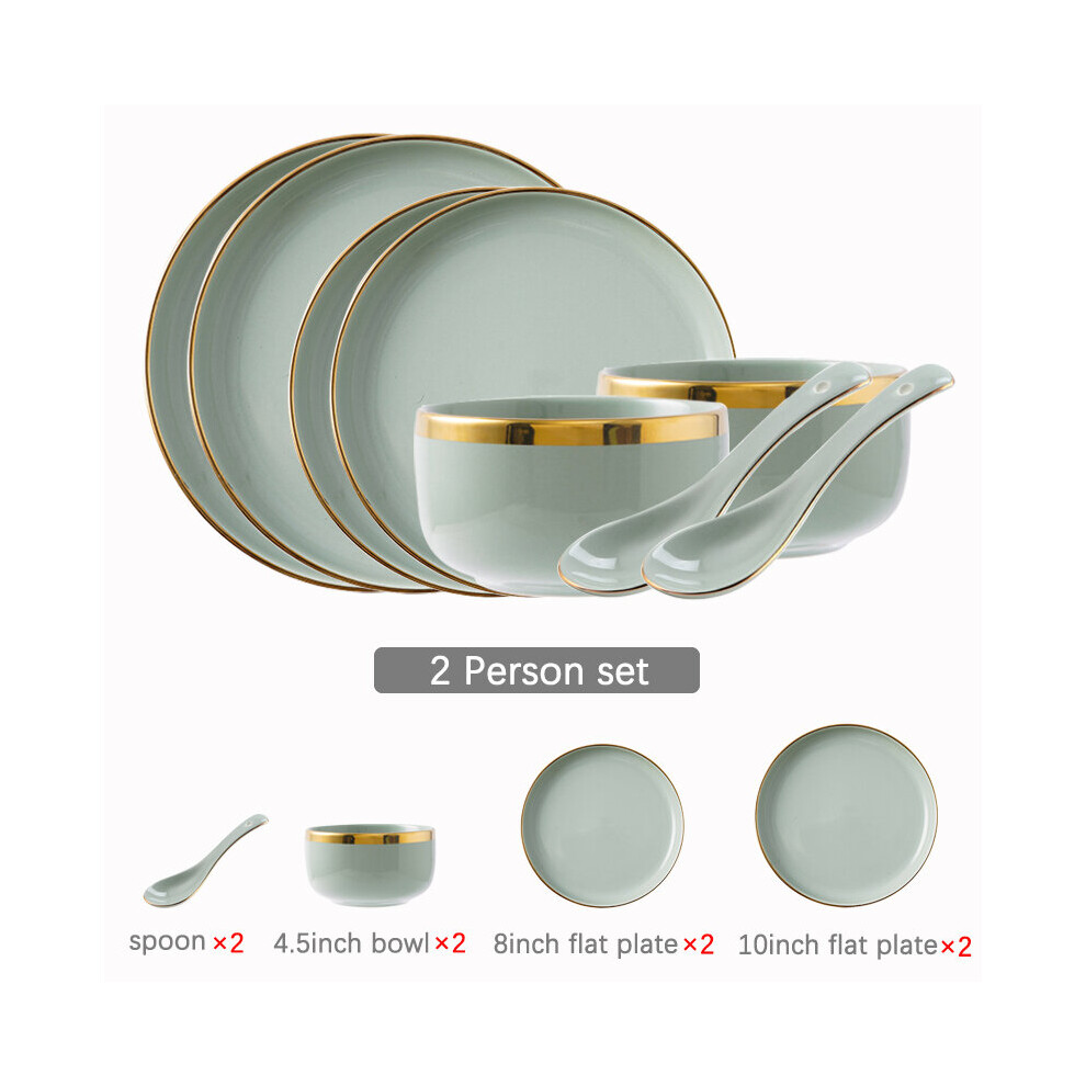 (a-2 person set) Ceramic Tableware Set Dishes Dinner Plates Steak Food Dessert Plate Green Salad Soup Bowl Plates and Bowls Set for Family Hotel
