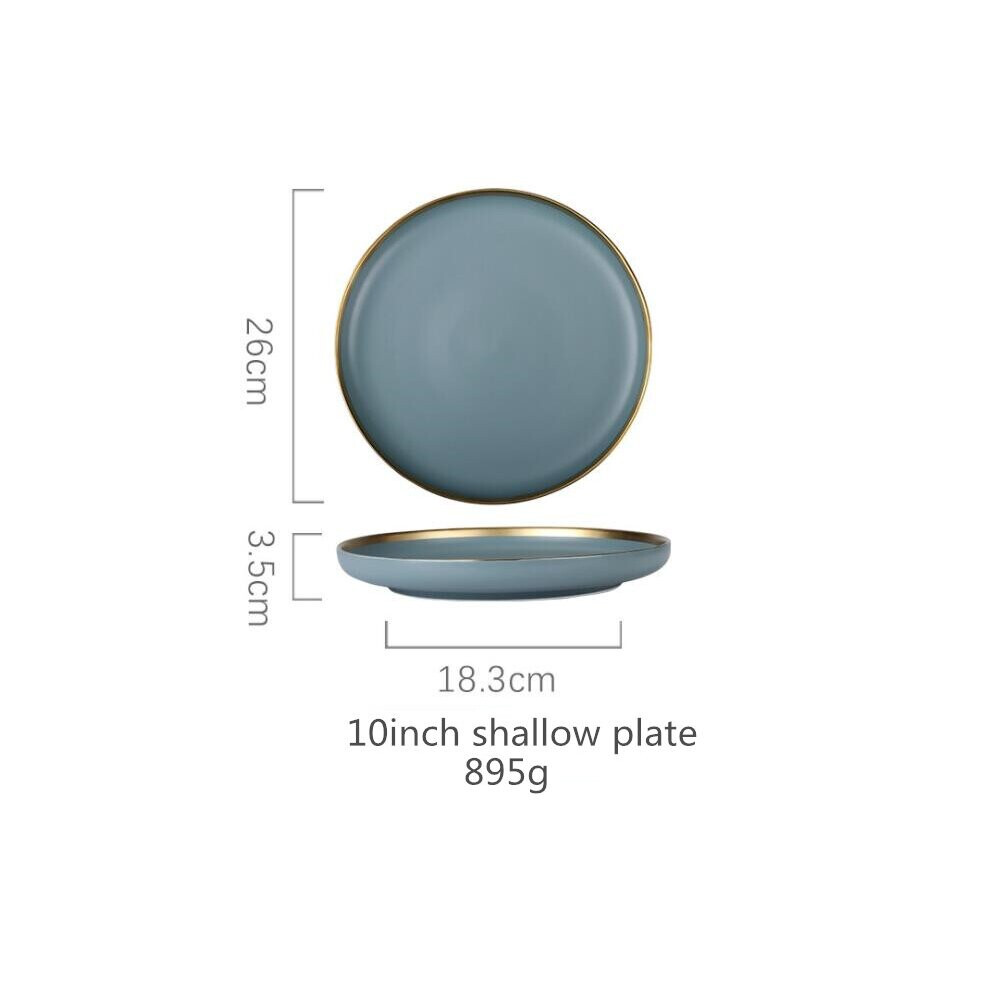 (a-10inch shallow plate) Matte Gilt Rim Ceramic Tableware Set with Spoon Cereals Bowl Dessert Plate Steak Plate for Dinner Gift Plates and Bowls Set
