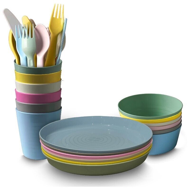 36 Pieces Plastic Plate Cups Bowls Cutlery Set for Children and Kids