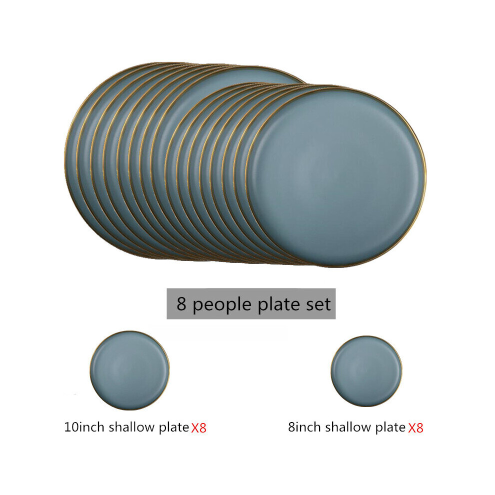 (a-8 people plate set) Matte Gilt Rim Ceramic Tableware Set with Spoon Cereals Bowl Dessert Plate Steak Plate for Dinner Gift Plates and Bowls Set
