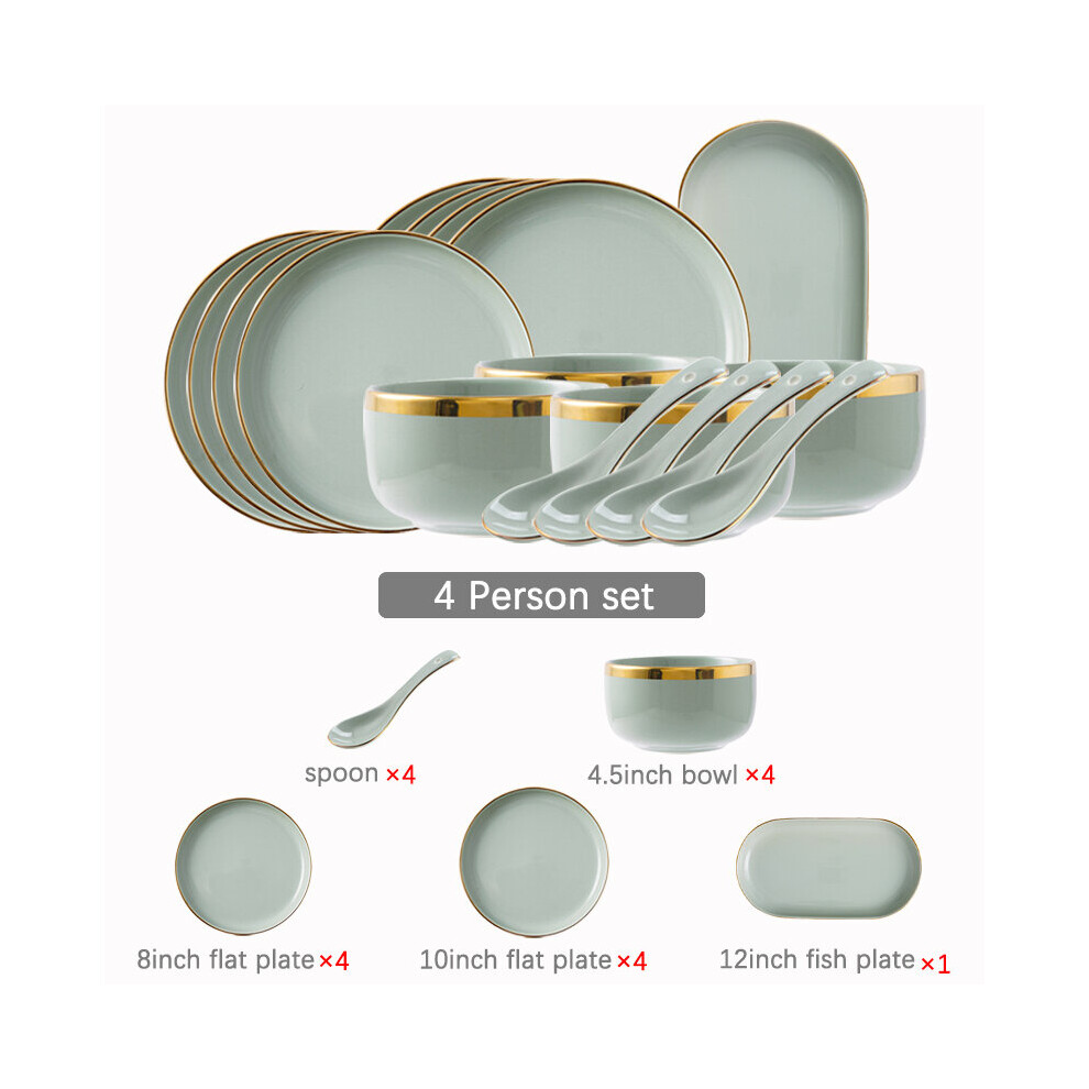 (a-4 person set) Ceramic Tableware Set Dishes Dinner Plates Steak Food Dessert Plate Green Salad Soup Bowl Plates and Bowls Set for Family Hotel