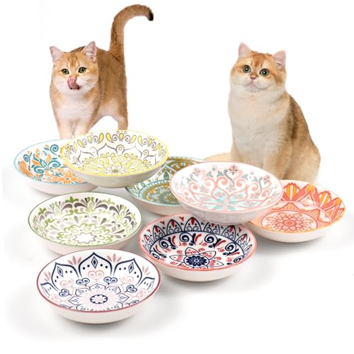 Cat Bowls Ceramic Cat Food Bowl 5.5 Inches Cats Dishes And Bowls Cute Whisker Fatigue Kitten Bowl Wide Shallow Kitten Feeding Plates Set Cats Plate Microwave and Dishwasher Safe