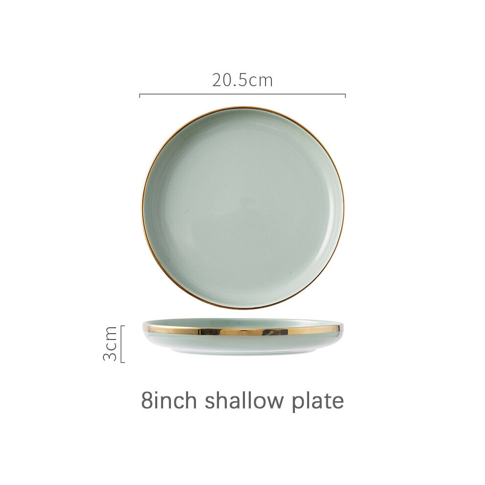 (a-8inch flat plate) Ceramic Tableware Set Dishes Dinner Plates Steak Food Dessert Plate Green Salad Soup Bowl Plates and Bowls Set for Family Hotel