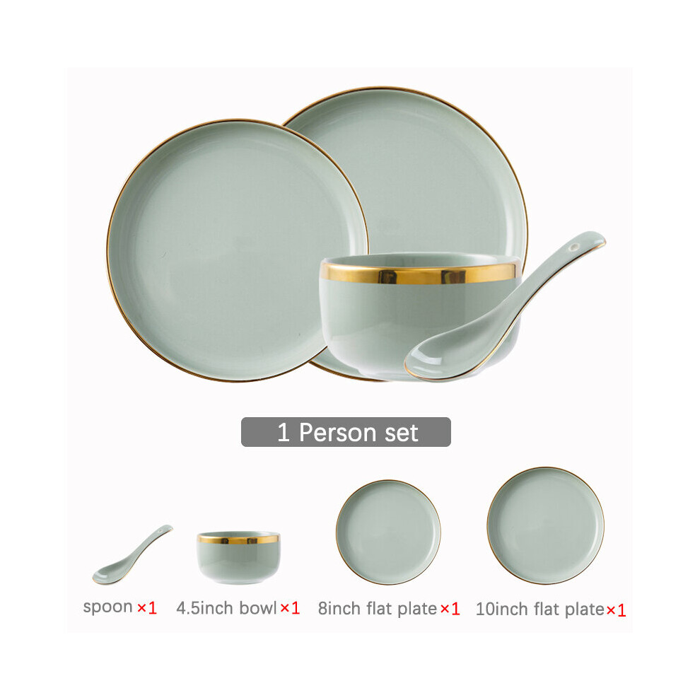 (a-1 person set) Ceramic Tableware Set Dishes Dinner Plates Steak Food Dessert Plate Green Salad Soup Bowl Plates and Bowls Set for Family Hotel